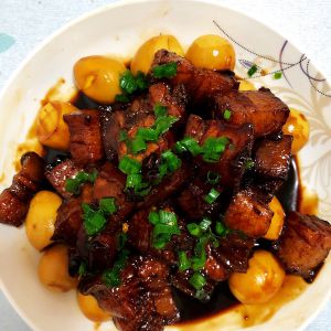 放葱段 加准备好的鹌鹑蛋(增加胶原蛋白) 至烧开