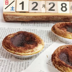把调制好的酱用小勺或者裱花袋均匀的挤入烤好的蛋挞中,在撒入可可粉,爆浆脏脏挞就制作完成啦