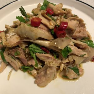 调好的料汁倒入鸡肉 加入香菜拌均匀就OK。