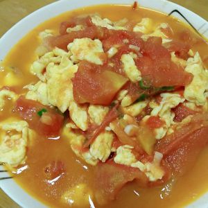 锅里放少许油,把西红柿炒软,放水炖一下,在放鸡蛋,盐,糖调味,出锅放葱花就可以出锅了(炒西红柿的图片不小心删掉了)