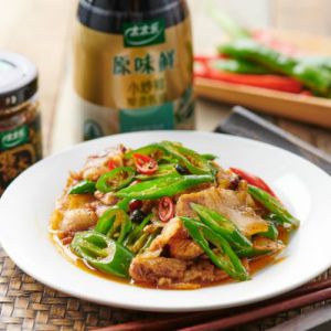 加入“太太乐”“酱大师”豆豉酱翻炒至肉片上色