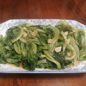把生菜洗3次,洗干净后,放在一边准备,把蒜剁成蒜蓉。