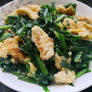 煎蛋的锅少来点油,油热倒入韭菜翻炒