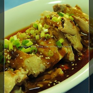 芝麻酱加水稍微稀释后,加酱油,醋,糖,盐,鸡精,花椒油,蒜汁拌匀。和凉后的红油混合浇在切好的鸡肉上,撒上些香葱末、熟花生碎和芝麻。