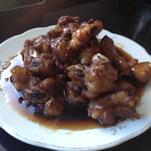 锅中留底油,放入冰糖融化,将炸过的排骨放入翻几下,倒入蒸排骨时的汤汁,大火收汁,起锅!这种做法,肉质鲜嫩入味!好吃!