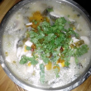 最后三分钟左右起锅,放入香菜,来吃咯。