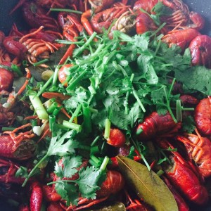 小龙虾翻炒至有点发红了加水加盖煮十五分钟