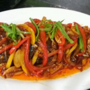 多余的油倒出,剩一部分油,加入红糖,红糖可以多些,番茄酱,白醋,炒出糖醋汁,加入彩椒,再将鱼回锅下,酱汁可以裹得均匀些