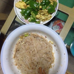 然后将chao好的金针菇跟冰好的粉丝搅拌,加入葱姜蒜用油一泼!加上粗、红辣椒搅拌均匀!可适当放些油泼辣椒。!虽然我这张卖相不好看!但是味道是很棒的哟!适合初学者。