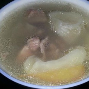 排骨加水,榴莲壳开始煲汤,大概2个小时。然后把榴莲壳捡出来,放榴莲肉,再继续煲30分钟,最后放盐。最后最后就是来一碗喽~
