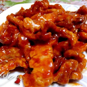 炸好里脊锅内留少许底油,下番茄酱炒一下,倒入调好的糖醋汁