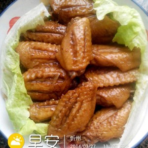 倒入生抽,鸡精,柠檬水,拌匀,放入鸡翅,转一转,有口子的最后朝下,腌制30分。