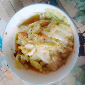 因为时间关系,忘了拍照,锅内倒油放下大蒜,炒香放入包菜