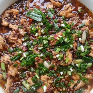 将另用锅放油烧至8成热放花椒入锅炸,这时火要转为小火,在花椒刚变色时再放辣椒面进去炸。这里的顺序是先花椒后把辣椒面炸,再辣椒面刚刚开始变色即可。把这个花椒,辣椒油的混合物倒在水煮肉片的盆里即可。主要是花椒炸的时间需要长点才有麻味,辣椒面可以炸老一点也可嫩一点,看个人口味。不过通过多吃作此道菜的经验,把辣椒面炸的刚刚有一点”糊”为口味最佳,最香。但这需要很好的把握,千万别炸的过糊而破坏了整体菜品味道。初学者建议还是先偏嫩一点稳妥。