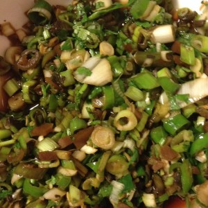 加入味极鲜、米醋拌匀即可。这道菜够辣、够酸才称的上“老虎菜”。
