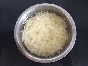 切好的土豆丝用清水浸泡,去除淀粉