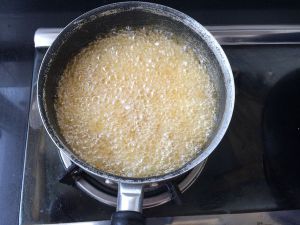 耐心炸制,水分慢慢消失,泡泡变少了