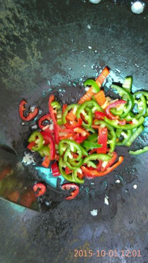 锅放油烧热,把蒜,姜,辣椒,下锅炒香,