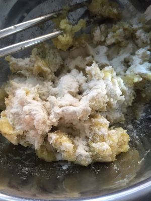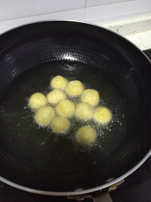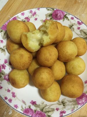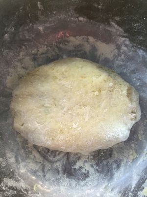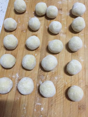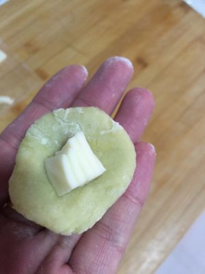 拿少量面团包上芝士,如果粘手可以在手上沾少量面粉