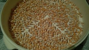 小玉米粒洗净放在微波炉专用模具里 加热五分钟