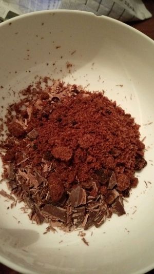 巧克力切碎加红糖放入碗中