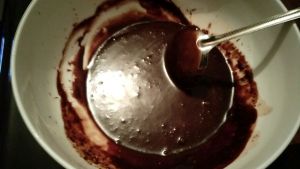 把碗放入锅中 加水加热 不停搅拌巧克力碎直至融化