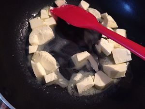 不粘锅中加入切好的无盐黄油至融化化成液体