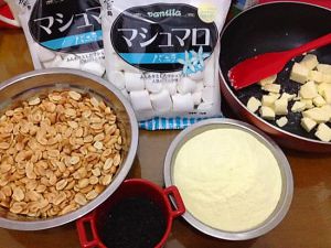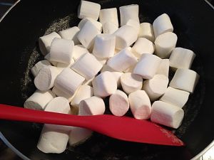 把棉花糖倒入拌匀,不断翻拌至完全混匀之后再继续搅拌数下