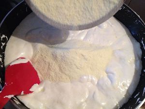 倒入不沾烤盘中,稍放几分钟开始塑形