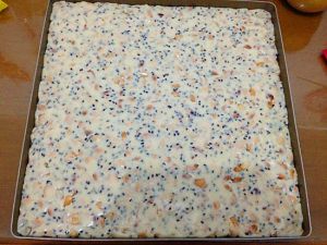 借助擀面杖或者刮刀压平,冷却好后就可切糖咯