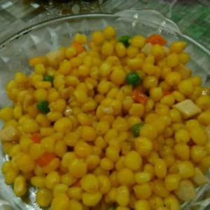 炒制肉丁发白后,即可放入盐,味精,白砂糖,翻炒均匀后即可出锅