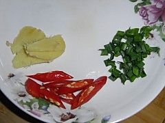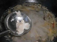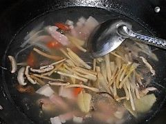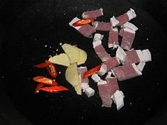 咸肉加水烧,快烧滚时撇沫,加料酒烧十五分钟。