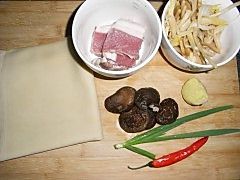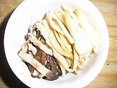 香菇、金针菇泡发洗净,香菇切丝、金针菇切二半。