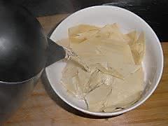 给百页洗热水澡,先冲一遍水倒掉再加热水泡一会儿,雪白的百页就好
