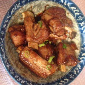 准备碗汁儿,一勺酱油,一勺料酒,三勺醋,四勺糖(本人喜欢甜的),少许鸡粉和盐,可加入一点排骨汤