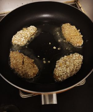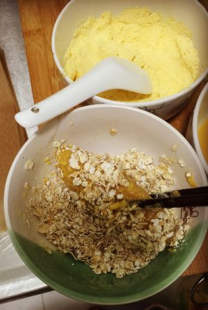 最后在燕麦里滚一滚,沾一层即可,不要太厚