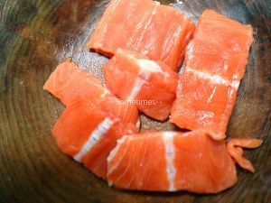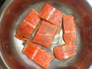 煎得比较老的话,肉质干身,会很香;煎得半熟的话会比较油,可是三文鱼的鱼肝油也是另一番美味哦。