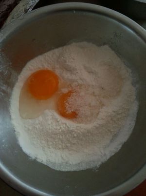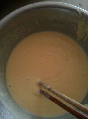 拿平底锅煎(很吃油,多放点)油热后用勺子拿一勺子倒入锅里就成圆状(可以用木筷子翻)