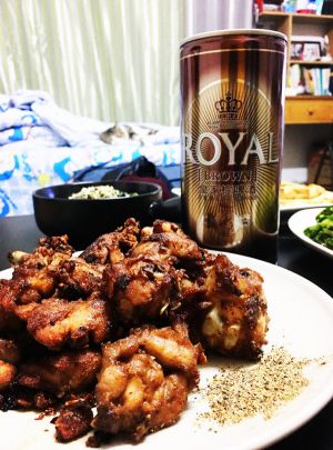 大功告成,虾酱味道浓郁让人垂涎三尺!别忘了啤酒配炸鸡哦~