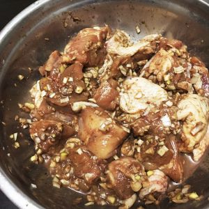 酱汁倒入鸡块,拌匀,腌制半小时。