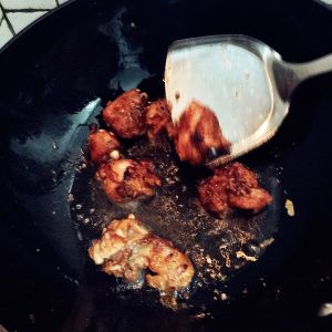 入锅,加足量的油,入鸡块翻炸,勤翻动,大块的需要着重注意以防夹生。
