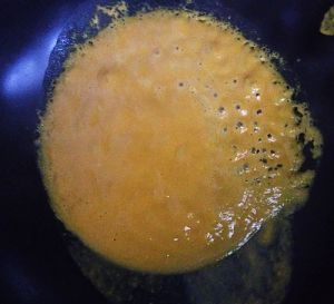 锅里少量橄榄油倒入南瓜泥翻炒加少量水,收汁时可适量放耗油、盐、鸡精,南瓜汁煮粘稠关火浇在蒸好的烧卖上面。