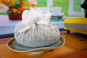 用多余的纱布剪一个长布条把它扎紧,记住哦,一定要绑紧,不然煮到一半散掉了就麻烦了