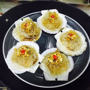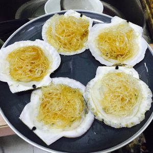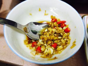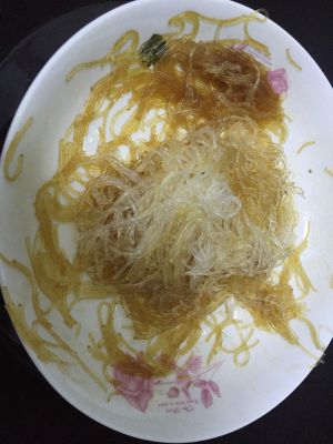 把粉丝泡软放入调味料。在粉丝里面放入油搅拌
