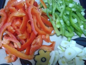 热锅倒油,放蒜片,出香味后放入杏鲍菇,彩椒翻炒,加入耗油,酱油,胡椒粉炒2~3分钟即可出锅(我的杏鲍菇已经焯熟)