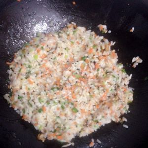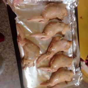 把炒饭用勺子装到鸡翅里,鼓鼓的。烤箱180度预热,烤25分钟。