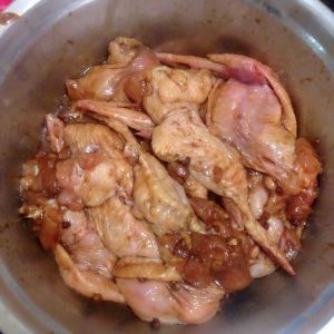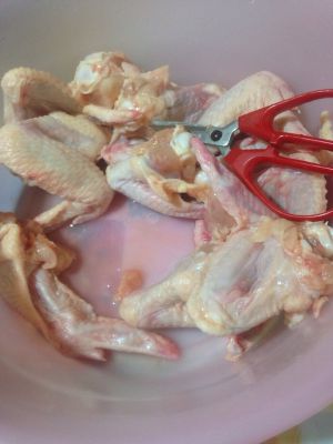 再把花椒,盐,糖,老抽,生抽,黄酒,韩国炸鸡料,放一起腌制鸡翅。1~2小时。