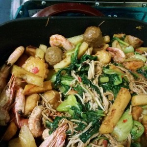 将上述所有食材依次在锅中煮熟八九成熟就可以,然后把锅加热,倒油,倒入麻辣香锅的料(超市就有卖),闻到香味,倒入刚煮好的菜,大约5-10分就可以出锅了!