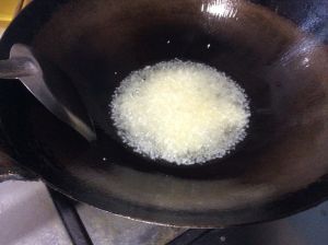 锅内放油,取一半蒜蓉,炸黃和另一半蒜蓉拌匀,再加入泡好粉丝切寸断拌匀,加入盐,胡椒粉搅拌均匀备用。