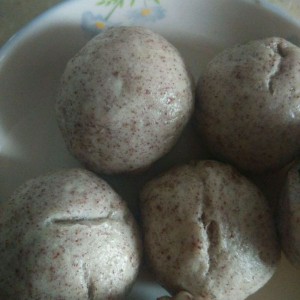 红豆打成粉(我是用料理机研磨的),与面粉混合在一起